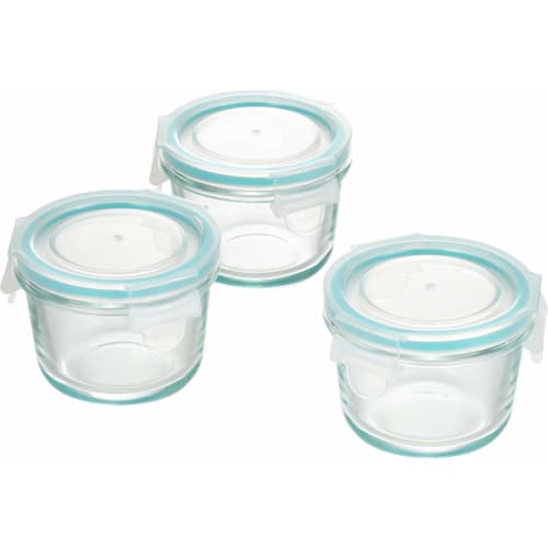Glass Container, 3-Point Locking, Mini Round Glass Storage Container, 3-Piece Set, SJ2719