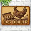 "Local Egg Dealer" rustic rooster metal sign, 8x12 inch.