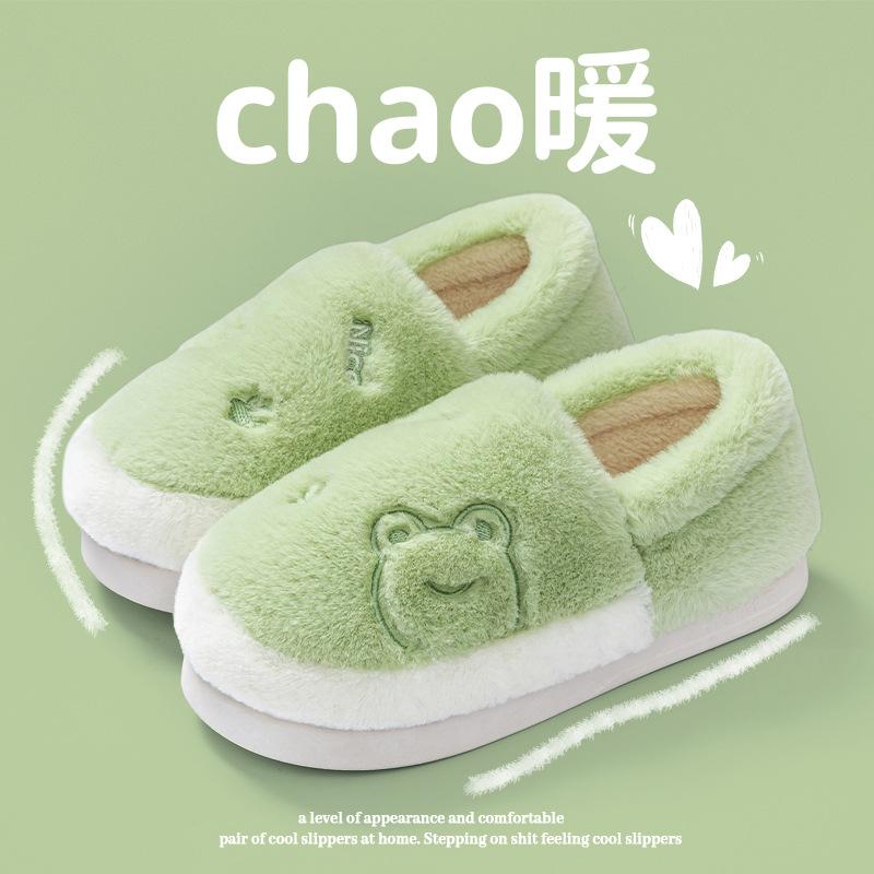 Bao root stepping on shit feeling home cotton slippers autumn and winter warm thick bottom velvet couple bedroom wool slippers
