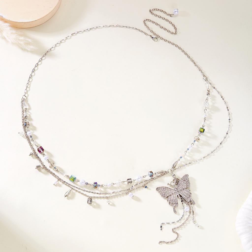 Hot Selling Butterfly Pearl Tassel Necklace Light Luxury Design Sense Waist Chain Clavicle Chain Two-Way Wear Niche Accessories