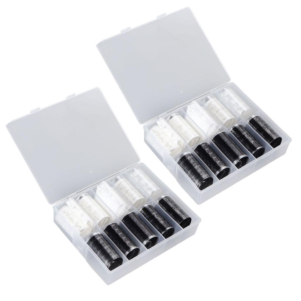 2 Bottles 10 Grid Nail Foil Transfer Stickers Black White Lace Nail Art Foil Designs Nail Lace Stickers