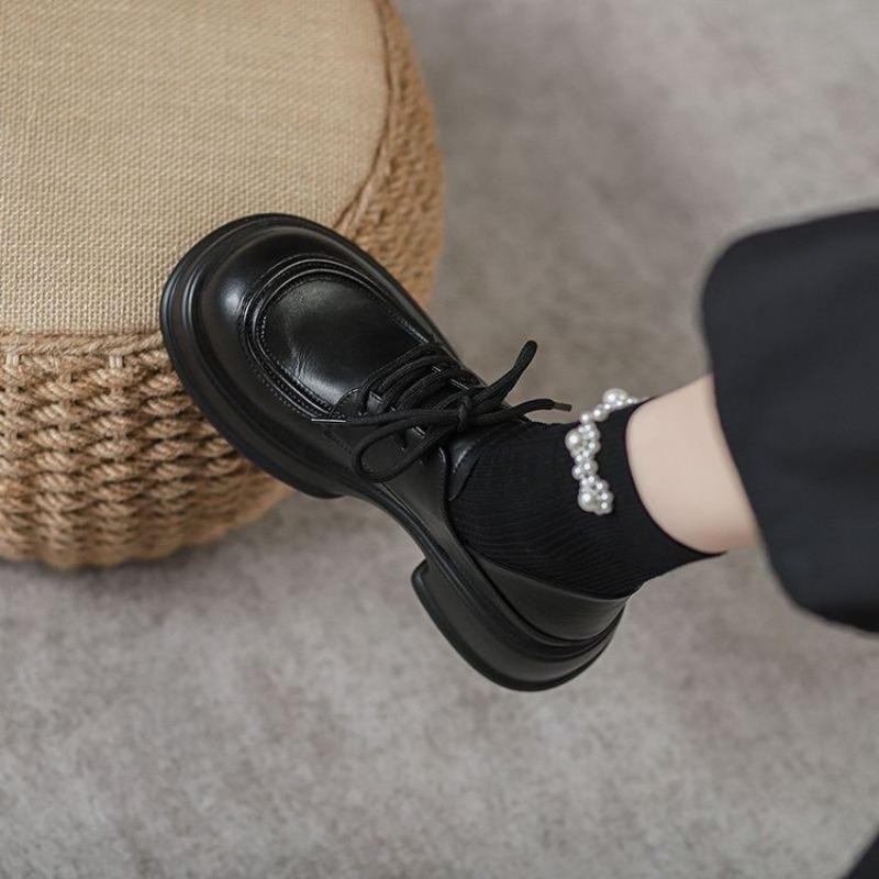 Small leather shoes women's autumn new thick-soled shoelaces soft-soled muffin retro versatile loafer single shoes
