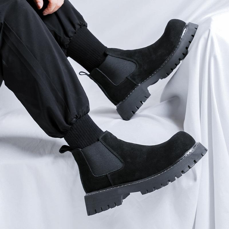 British style men casual chelsea boots slip-on cow suede leather shoes cowboy platform boot spring autumn cool ankle botas mans