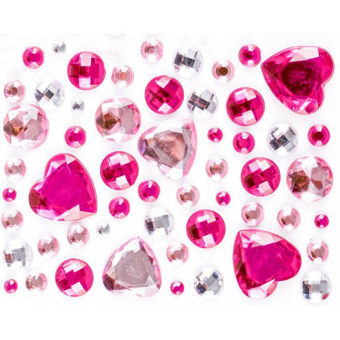 Stickers strass coeur rose 0,5 à 2 cm 50 pièces