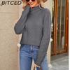 BITCED Women's Autumn/Winter Solid-Colour Knitted Top with High-Neck Cable-Knit Sweater Elegant High-Neck Base Layer