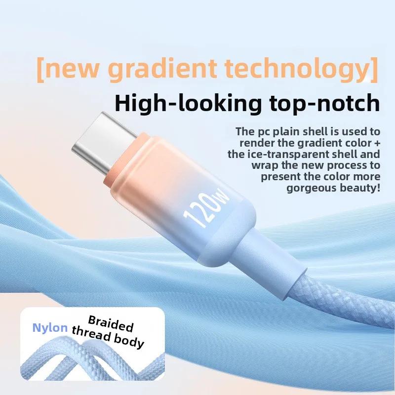 120W 6A USB C Cable for IPhone 16 15 Pro Plus Type C To Type C Fast Charging Cable for Xiaomi Samsung Huawei Gradient Color Wire