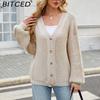 BITCED Relaxed-Fit Oversized Cardigan Autumn/Winter Long-Sleeved V-Neck Cable-Knit Sweater