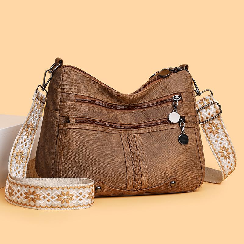 Soft Leather Bag with Large Capacity for Middle-aged and Elderly Mothers, Versatile Multi-layered Women's Crossbody Bag
