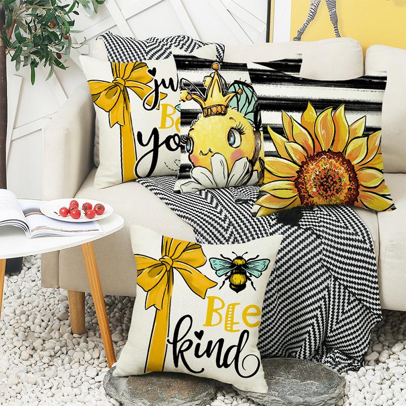 Nordic Bow Sunflower Print Waist Pillow Letter Square Sofa Bedside Pillow Case