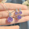 Luxury Octagonal Rose Cut Pendant Necklace Champagne Diamond Ring Green Earrings Pink Diamond Jewelry Set