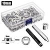 - Combinații multiple: Setul de capse include 1 unealtă și 100 de seturi de capse (fiecare set include 1 ochi și 1 șaibă) si o cutie de depozitare.