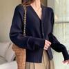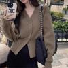 French Soft White V Neck Knit Cardigan Autumn Winter Design Lazy Style Waist Defining Cropped Sweater
