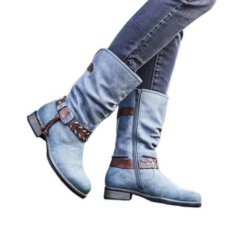 Cizme noi confortabile cu toc jos gros, cu vârf rotund - Cizme de iarnă cu platformă groasă și închidere cu cataramă, vârf rotund și suport pentru arcadă, cauciuc antiderapant