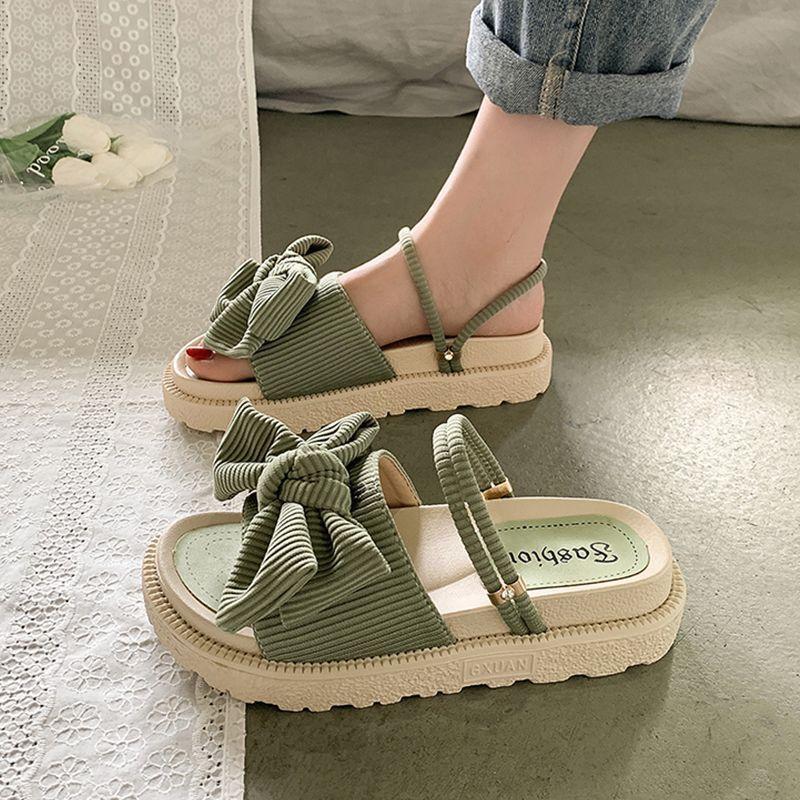 Fairy wind two wear student sandals female summer new wide fat feet non-slip flat bottom casual wear soft bottom half slippers