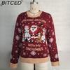 BITCED Red Christmas Sweater for Women Fall/Winter Snowflake Christmas Pullover