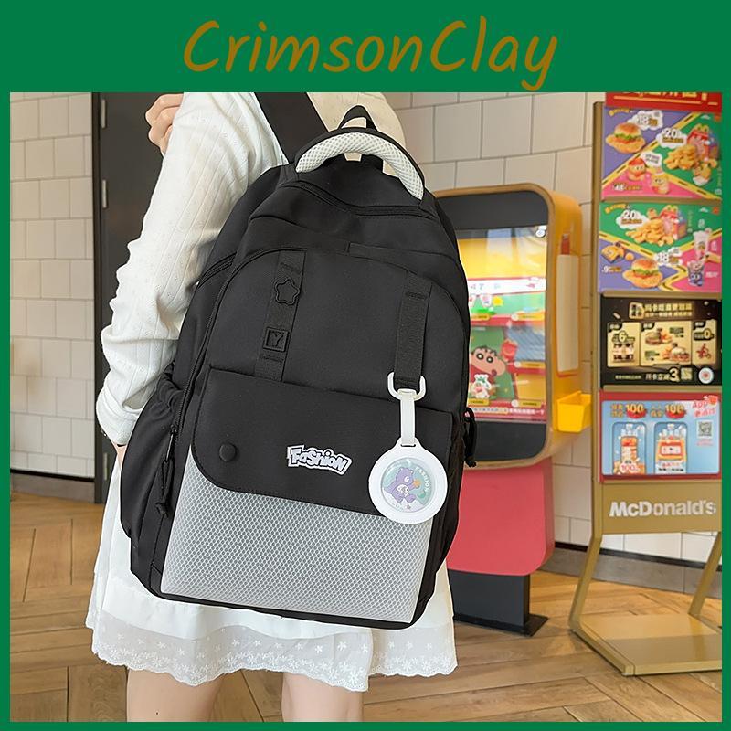 Solid Simple Color Letter Print Student Backpack With Pendant For Daily Use