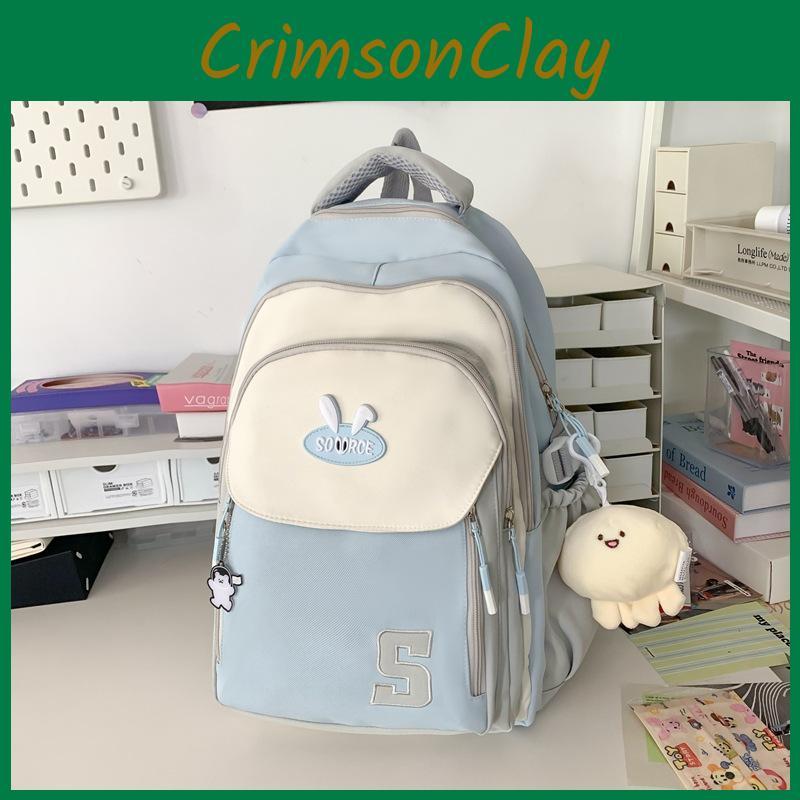 Blocked Simple Color Letter Rabbit Ear Decoration Student Casual Backpack