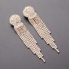 Elegant European & American Style Geometric Tassel Earrings with Inlaid Diamonds - Long, Exaggerated Design for a Slimmer Face Look