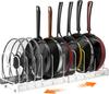 Suport Organizator pentru Oale și Tigăi pentru Dulap, Extensibil, Suport Organizator pentru Lids de Oale cu 10 Separatoare Reglabile