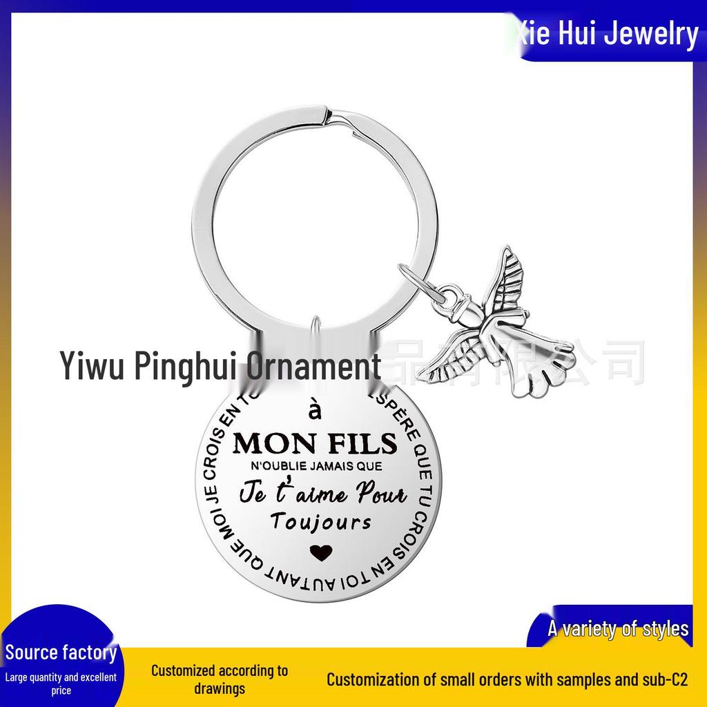 Stainless Steel Keychain Pendant: "MA MON NOTER" French Holiday Gift for Son and Daughter
