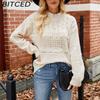 BITCED Women's Casual Loungewear Sweater Autumn/Winter Solid Colour Fashion Long-Sleeved Pullover Knit Sweater