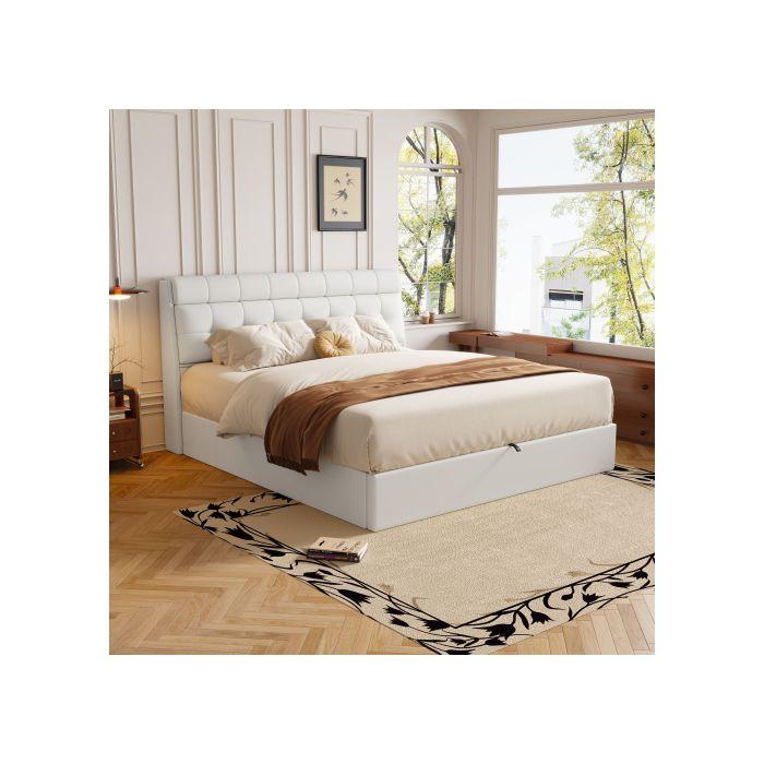 Lit - MUVOE - 140x190 - Lit hydraulique - Rangement caché - Design moderne blanc