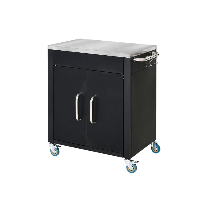 HOMCOM Chariot de cuisine sur roulettes Chariot avec placard et crochets Poignée en acier inoxydable Noir 86x50x86,5 cm