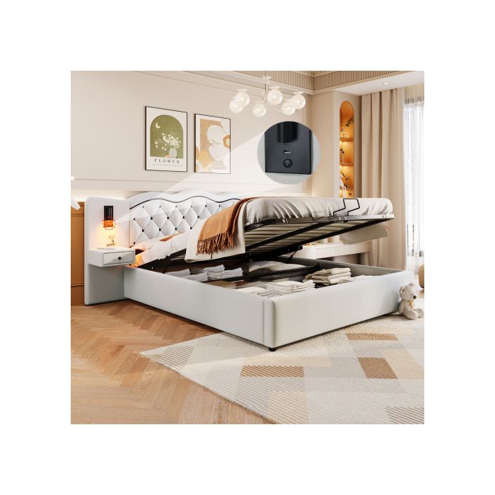 Lit - MUVOE - 180x200 cm - Rembourré - Espace de rangement - Prises USB intégrées