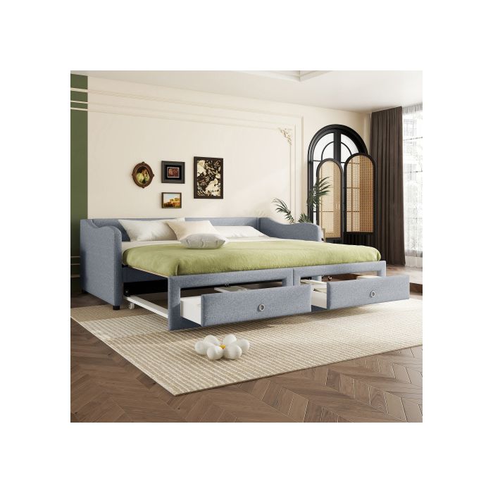 Lit de jour 90x200 cm - MUVOE - Canapé-lit avec tiroirs - Gris - Lit escamotable - Multifonctionnel