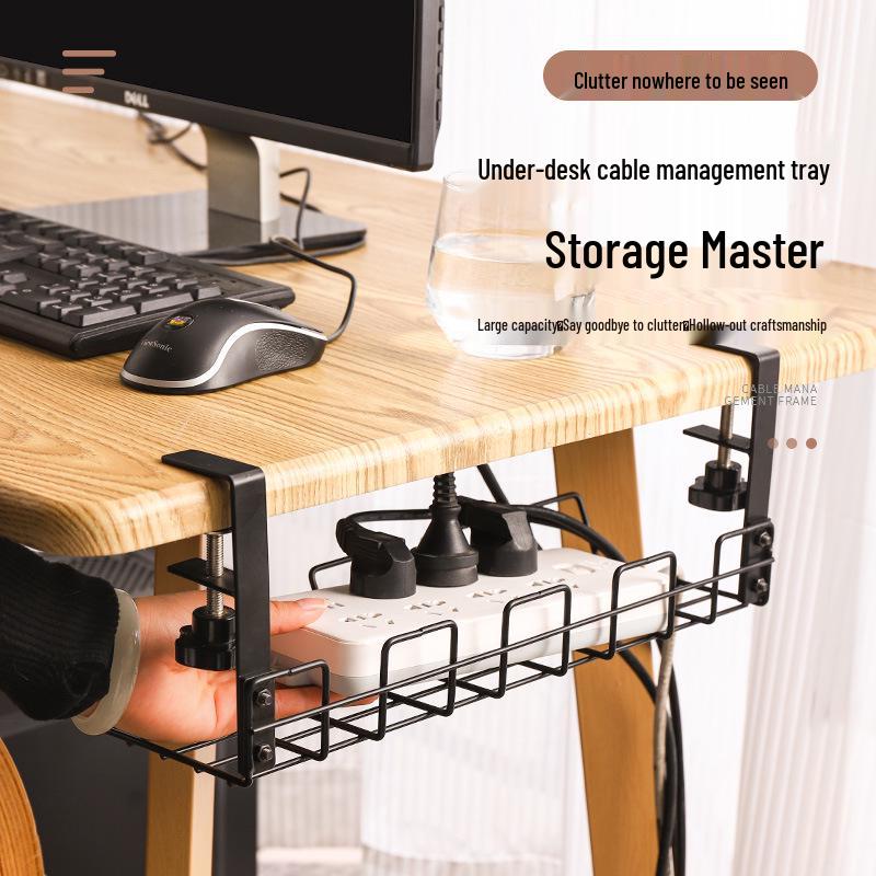 Punch-Free Under-Desk Adjustable Wire Storage Rack