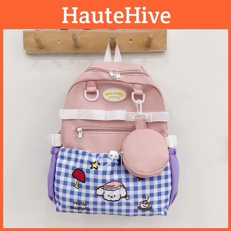 Large Capacity Kids Backpack With Grid And Cartoon Dog Print Design For Daily