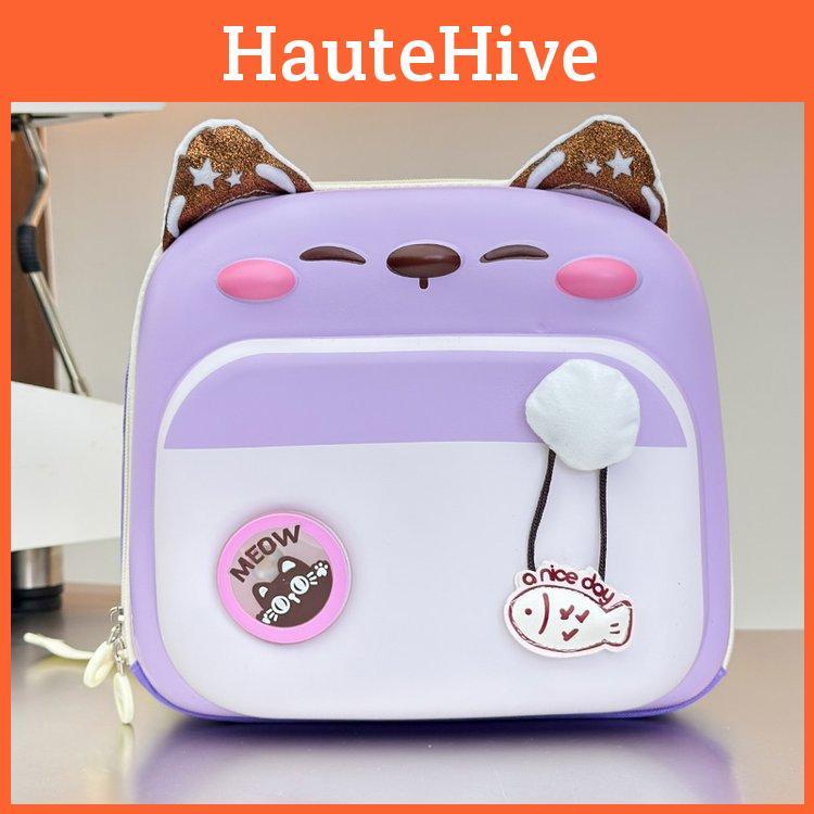 Blocked Color Cute Cartoon Cat Pattern Children Hard Shell Backpack Square