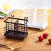 Wall-mounted Carbon Steel Chopsticks Cage Hollow Square Tableware Storage Tube Detachable Spoon Drain Rack Kitchen Storage Tools
