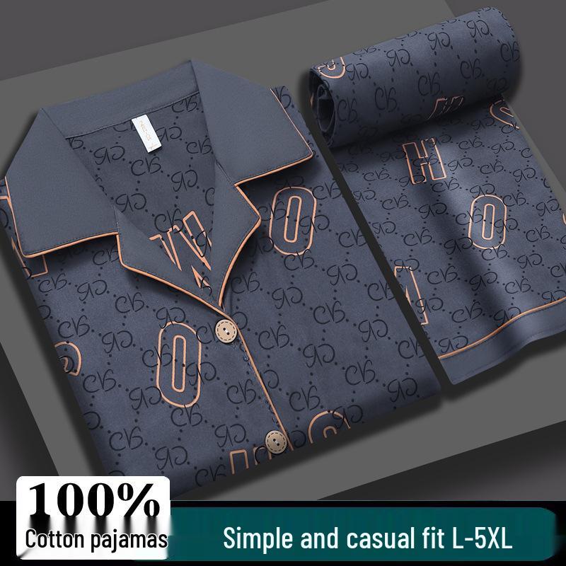 Men's Plus Size Summer Cotton Pajama Set - Short Sleeve Top and Long Pants for Middle-Aged Dads
