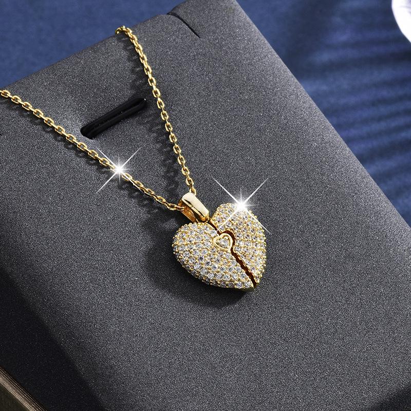 Colier cu pandantiv unisex în formă de inimă: Stil Hip-Hop European și American cu Design Lanț și Lacăt 3D, Deschizabil pentru Personalizare