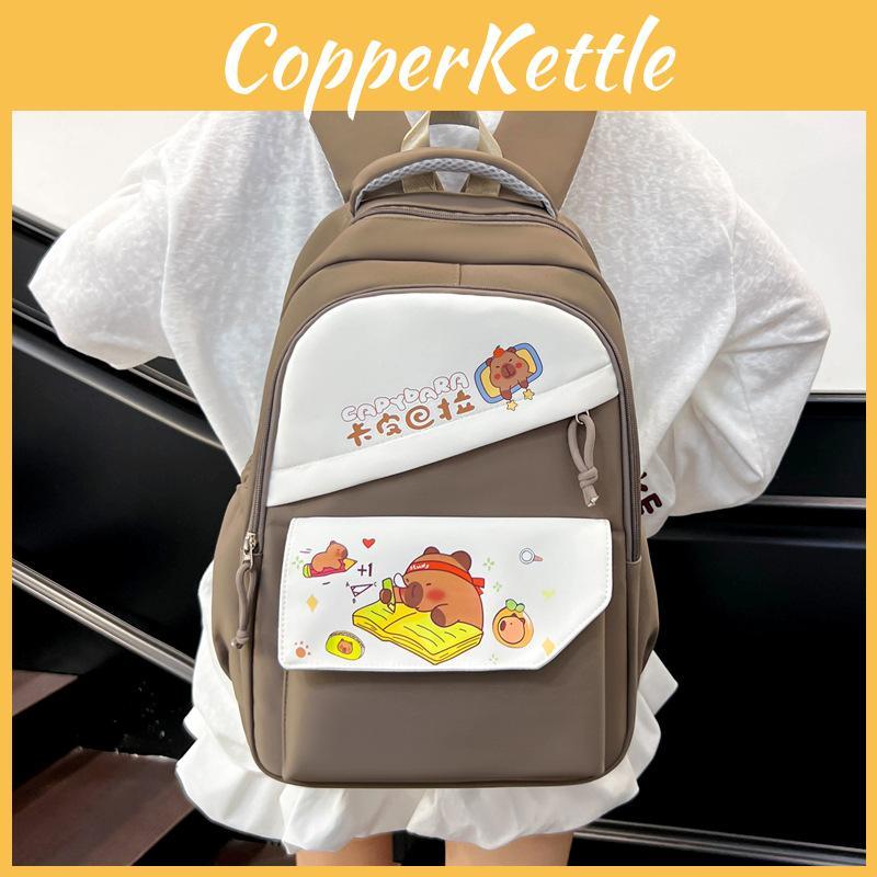 Capybara Pattern Cartoon Nylon Backpack With Striped Stitching For School Travel
