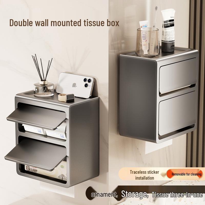 Cutie de șervețele și raft de depozitare montat pe perete fără găuri | Suport pentru rolă de toaletă și dispenser de baie