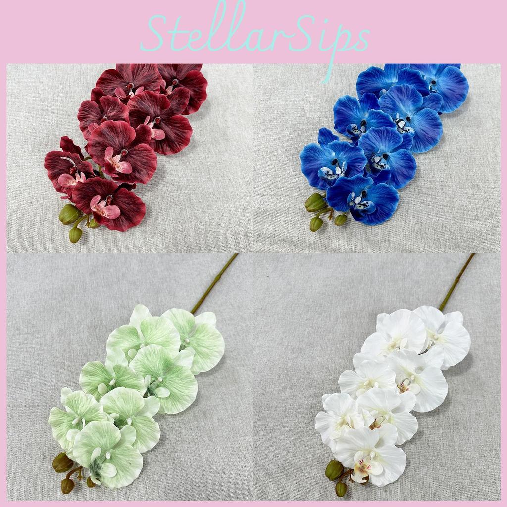 Enhance your living space with realistic Phalaenopsis table decor, crafted to add elegance and charm. The vibrant color options include deep red, royal blue, violet, green, rose, ivory, light pink, flesh pink, dark purple, and champagne, allowing for versatile interior styling. Designed to bring a natural feel to any setting, these orchid arrangements are ideal for home decoration, wedding tables, or photography props.