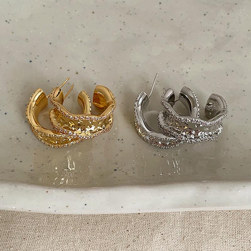 High-End C-Shaped Diamond Stud Earrings: Trendy, Luxurious, Versatile for Women