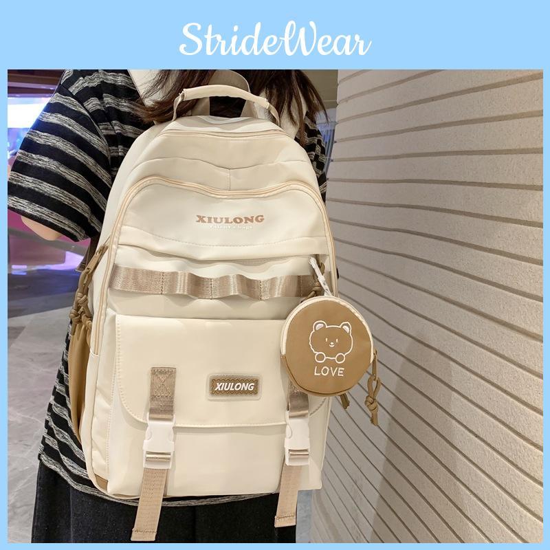 Measuring approximately 12 inches by 6 inches by 16 inches, this unisex bag is suitable for school, casual outings, or travel. Its moisture-resistant fabric withstands daily wear, and the stylish color options include black, white, blue, green, purple, and pink. Wipe clean with a damp cloth for maintenance.