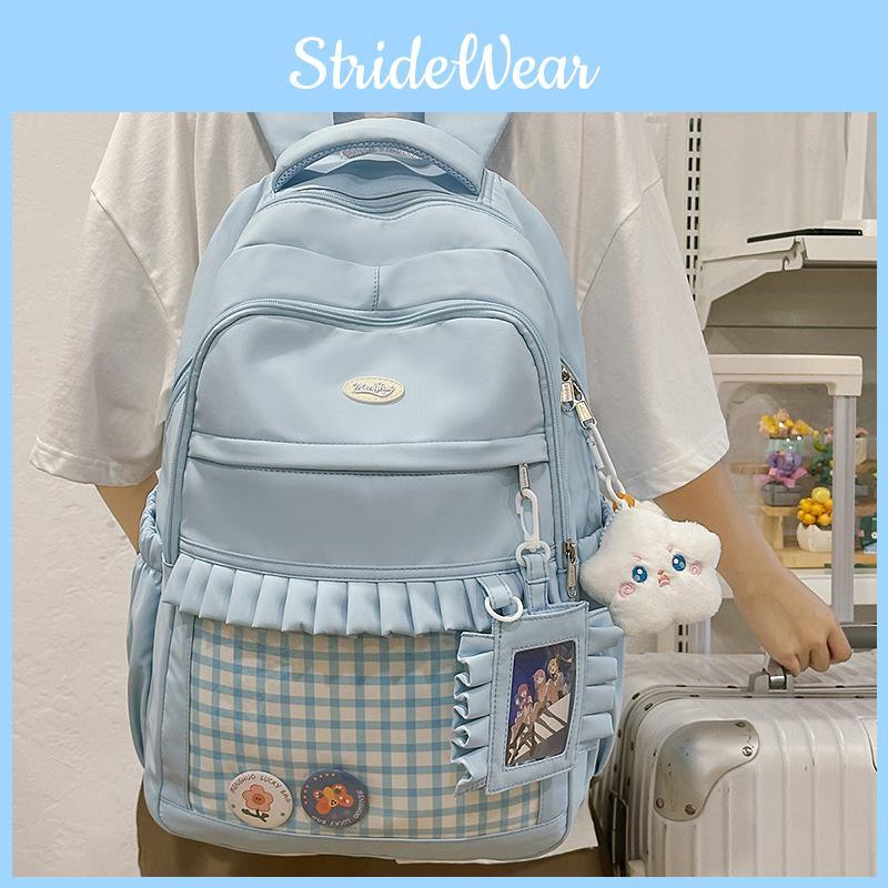 This youth-style backpack features a durable nylon exterior with a polyester lining, Its lightweight design supports carrying books and essentials comfortably for students or casual outings. Available in vibrant colors with decorative hangers, it complements everyday outfits. Easy to maintain, wipe clean with a damp cloth.