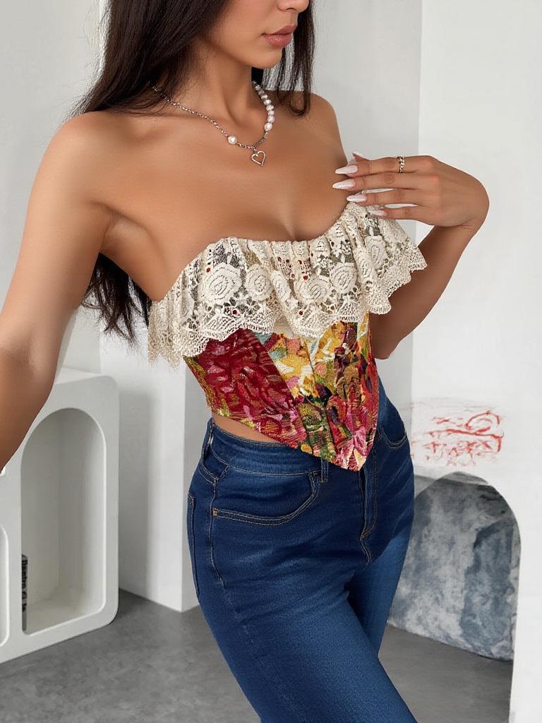 Retro Jacquard Lace Patchwork Fishbone Corset - Sexy French Oil Painting Style