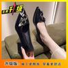 French Mary Jane shoes 2025 new spring thick heel pointed middle heel high heels single shoes women's skirt small leather shoes