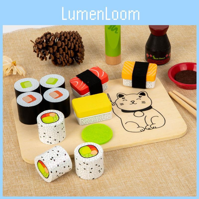 Kitchen Play Pretend Toy Wooden Sushi Cake Children Learning Creative Play Gift