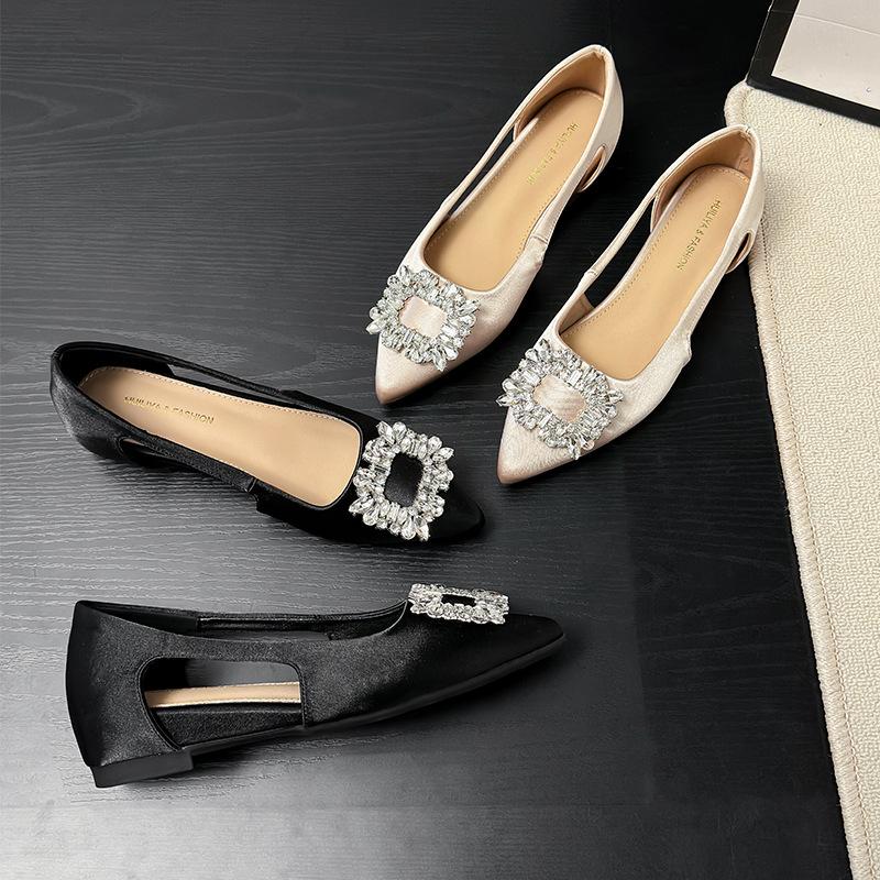 W9931-1 black side empty single shoes, rhinestone bag head sandals for women, new models in summer 2025, shallow mouth with skirt for women