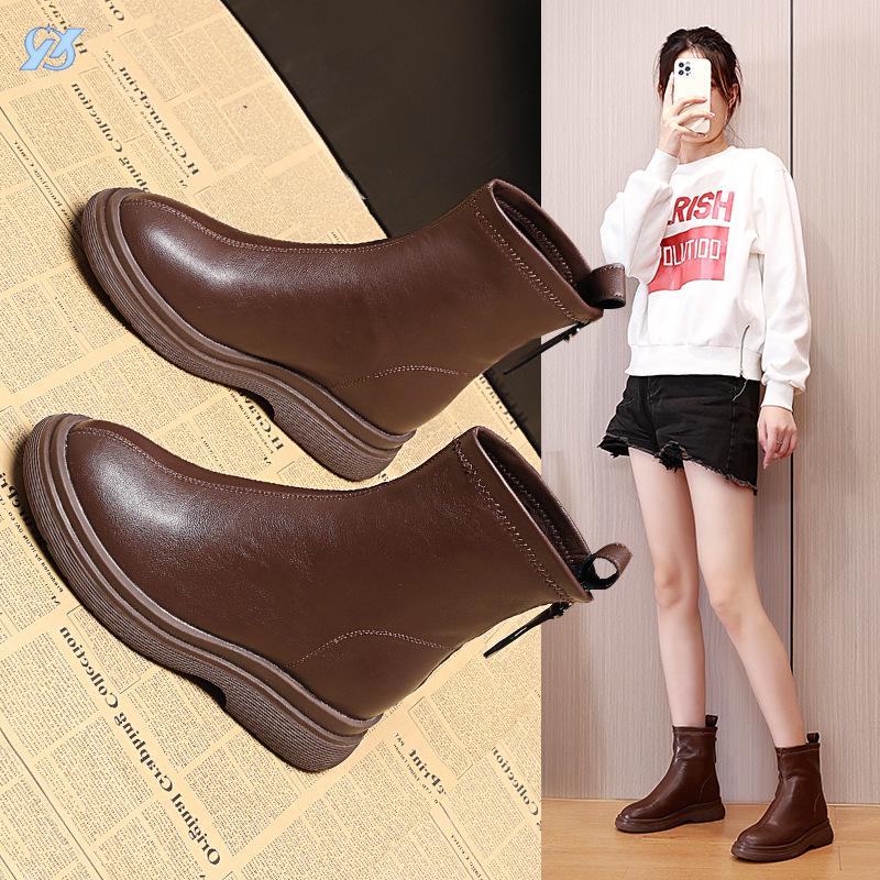 Thick-soled Martin women's new autumn thin inner height increase women's brown fried street short