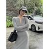 Rochie Tricotată Galbenă Stil Coreean Slim-Fit cu Mâneci Lungi - Rochie Lungă Casual de Toamnă pentru Femei, Cambrată în Talie, Muldând Șoldurile