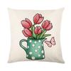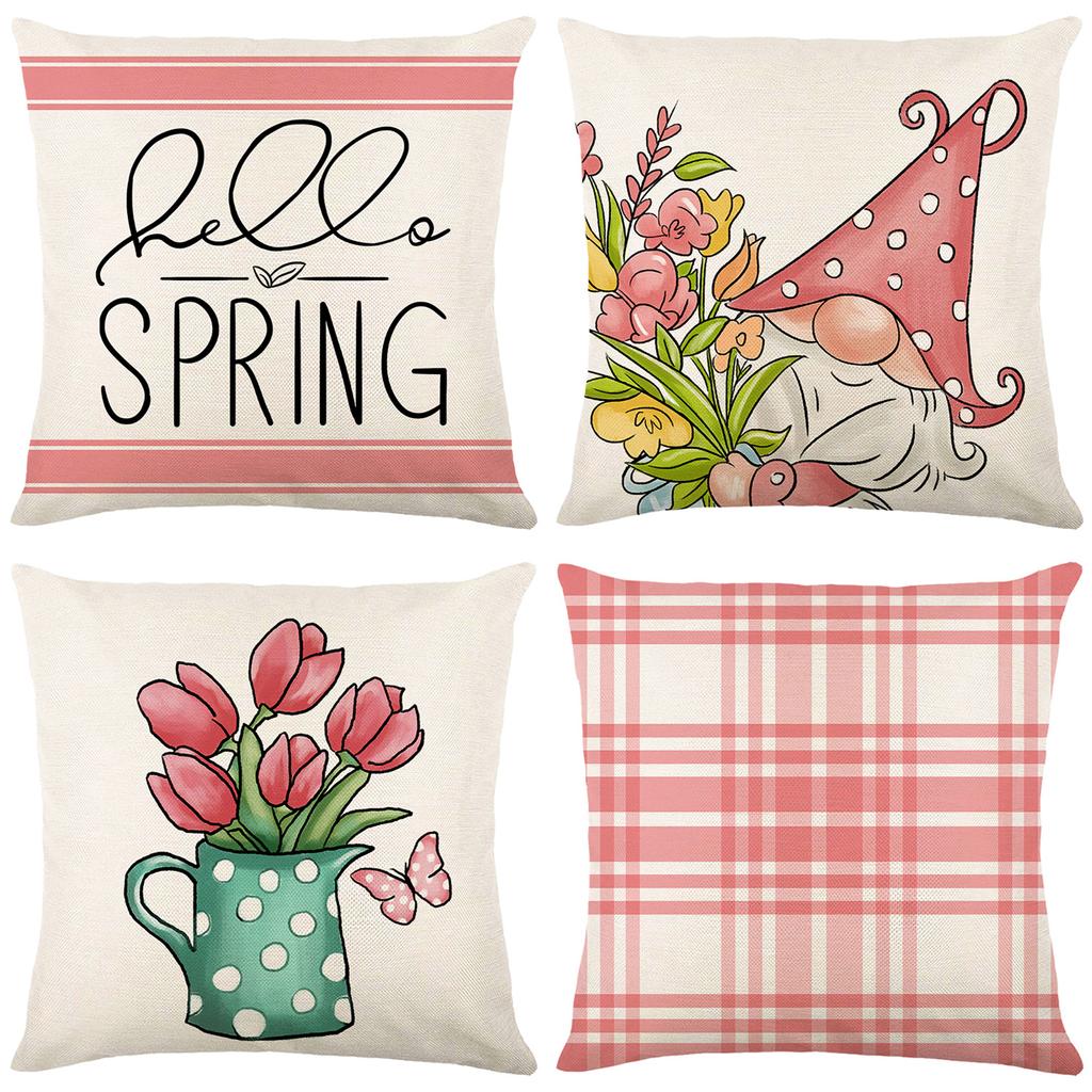 Pink Plaid Printed Pillow Cover Spring Plant Flowers Polyester Letters Home Bedroom Cushion