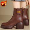 Chunky Round Toe Woman Short Shoes Autumn Winter Leather Booties Elegant with Medium Heels Ankle Boots for Women New in Pu Boot