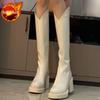 Elegant Heeled Leather Round Toe Knee High Shaft Shoes Woman Autumn Winter Platform Long Boots for Women Y2k Goth New Rock Boot